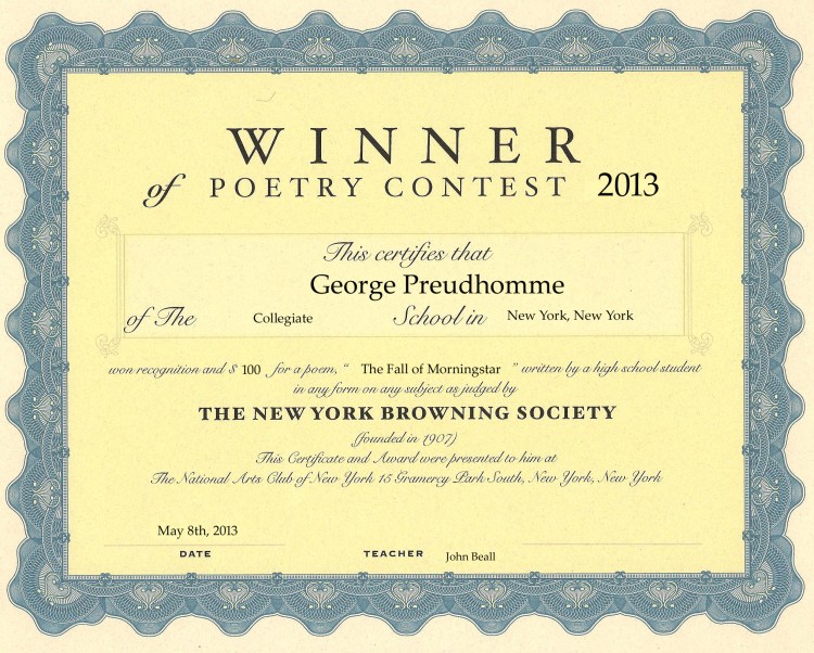 2013 New York Browning Society NYC Poetry Contest Winners + Short List