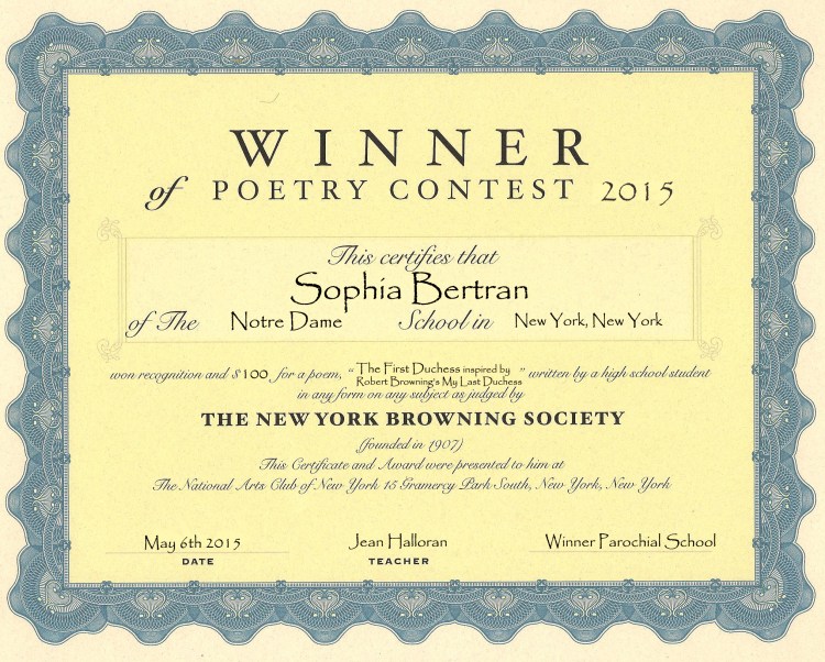 2015 New York Browning Society NYC Poetry Contest Winners + Short List
