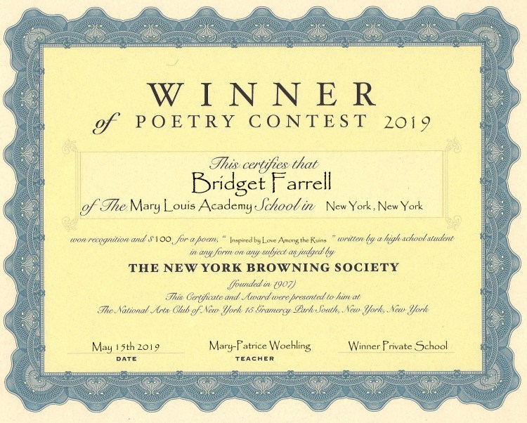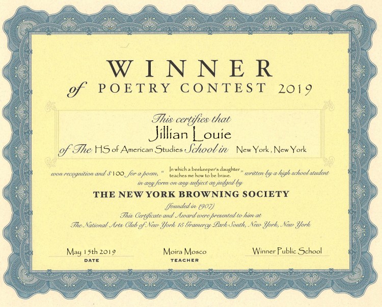 2019 New York Browning Society NYC Poetry Contest Winners + Short List