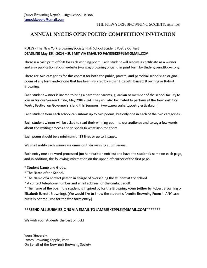 2024 NYC HS POETRY CONTEST RULES AND INVITATION 2024-NYC-POETRY-CONTEST-RULESDownload Share this: Click to share on X (Opens in new window) X Click to share on Facebook (Opens in new window) Facebook Like Loading...